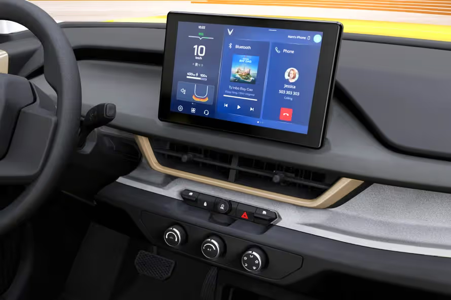 • Thiết kế: Nội thất VF3 tối giản nhưng hiện đại với ghế bọc nỉ hoặc vải cao cấp tùy phiên bản. Không gian bên trong đủ cho 4 người lớn hoặc gia đình nhỏ.